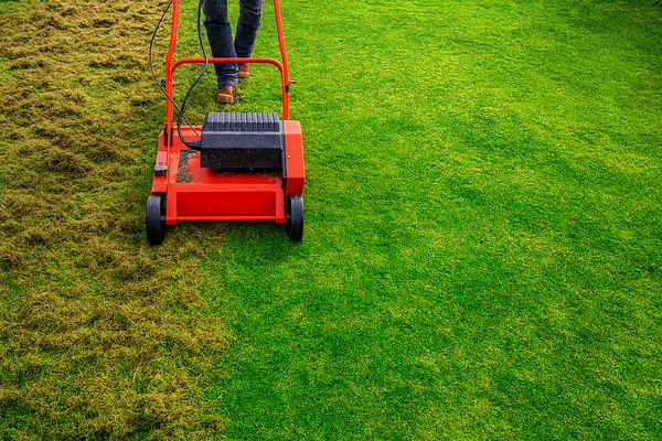 Dethatching pulls out the built-up layer of dead grass and debris so your lawn can actually absorb what it needs.